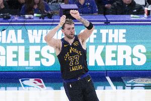 上半场,面对旧主的湖人球星东契奇表现出色,场上攻击欲望很强,在19分半的时间里,投篮8中5,三分球4中2,罚球6中6,轰下18分2篮板4助攻的数据。