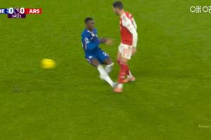 体育资讯12月01日讯 英超第13轮,切尔西主场迎战阿森纳,比赛第34分钟,凯塞多蹬踏梅里诺脚腕,两人双双倒地。