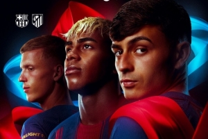 巴萨官方社媒发布了为此役制作的海报,亚马尔、佩德里、奥尔莫出镜。
