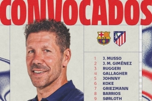 马竞对阵巴萨大名单:小蜘蛛、格列兹曼、瑟尔洛特、巴埃纳在列