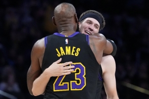 本场比赛里夫斯爆砍44分5篮板11助攻,谈到他的表现,詹姆斯说:“我真的超级超级为他感到高兴。”