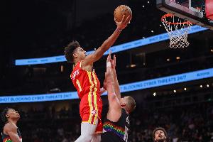 上半场杰伦·约翰逊出战18分钟10投7中,三分3中1,罚球1中1砍下16分7篮板6助攻2抢断,正负值+11