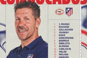 马竞客战埃因霍温名单:卡尔多索回归,朗格莱因肌肉问题缺席