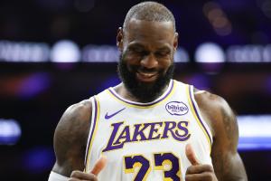 詹姆斯目前出战7场比赛,场均16.1分4.7板7.6助