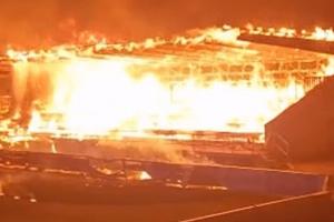 惨😭芬超降级队主场看台被大火完全烧毁,警方怀疑是人为纵火