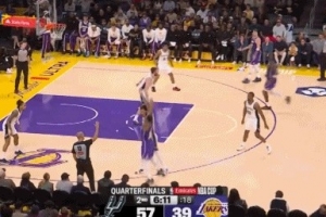GIF-斯玛特三分不中,和尚帕尼双双倒地