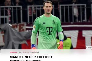 体育资讯12月15日讯 拜仁官方发布伤情公告,队长诺伊尔在对阵美因茨比赛中肌肉纤维撕裂。