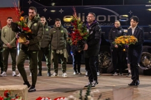 狼队球员们比赛前一天晚上来到安菲尔德球场献花,缅怀因车祸去世的前利物浦球员若塔。