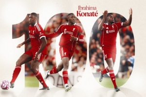 利物浦官方也通过社媒晒出纪念海报祝贺:“科纳特在今晚达成了英超100场里程碑。”