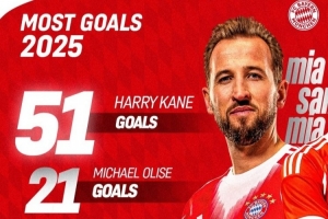 体育资讯12月28日讯 2025年即将结束,拜仁俱乐部官方也回顾总结了多项年度数据:
