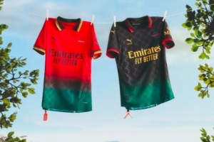 Off-White(美国潮牌)首次涉足球场,自然引起了广泛关注。继与米兰俱乐部场外合作后,这款(实际上是两款)球衣应运而生,将品牌的时尚大胆和精致风格直接带到了绿茵场上。更重要的是,这款球衣传递了一个信息,正如与红黑军团合作的哲学一样:以1963年为灵感的“梦想之地”概念,既包含了体育意义(米兰在那一年赢得了他们的第一座欧洲冠军杯),也涵盖了文化意义,即马丁·路德·金关于社会平等的演讲。使用泛非旗帜的颜色成为这款球衣的一个重要身份特征。
