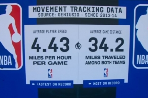 球员每场平均奔跑速度4.43英里/小时、球队场均跑动34.2英里