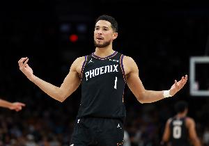 体育资讯1月5日讯 NBA常规赛,太阳在主场以108-105击败雷霆。比赛最后时刻,布克不讲理三分绝杀。