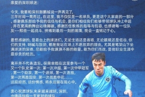 张煜东致深圳球迷的一封信