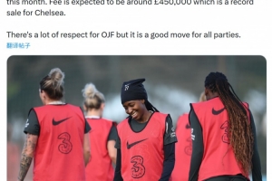 Nizaar Kinsella透露,维拉女足将在本月引进切尔西女足中场弗朗索瓦,预计转会费约为45万英镑,这将创造切尔西女足队史出售球员最高转会费纪录。