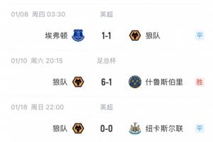 体育资讯01月19日讯 英超第22轮,副班长狼队0-0逼平纽卡,近4轮不败拿到6分,一改前半程的萎靡状态。