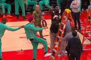 下一篇: 等得挺无聊~火箭VS马刺调整篮筐跳球推迟 KD、阿门都在场边打哈欠