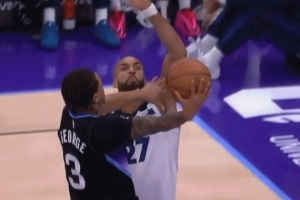 GIF-基昂特·乔治挑战戈贝尔将球上进