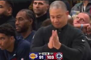 GIF-东契奇罚球不中,泰伦卢起身鼓掌
