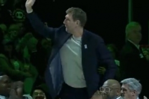 GIF-独行侠举行阿吉雷球衣退役 诺维斯基到场被介绍掌声雷动