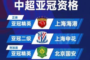 直播吧:下赛季中超3队亚冠分配结果不变,海港国安申花出征亚冠