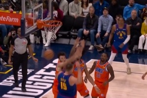 GIF-约基奇脑后妙传斯潘塞命中底角三分