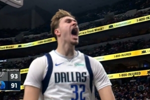 GIF-弗拉格突破单臂炸扣,分差2分马刺暂停