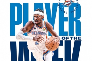 亚历山大上周率队取得了4胜0负的战绩,场均31分4.5篮板6.5助攻2抢断,投篮命中率60%,三分命中率64.3%,罚球命中率90.2%。