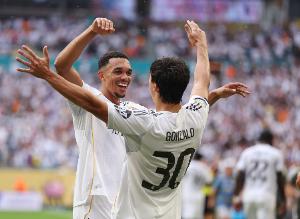 雷米罗,这位皇家社会出色的门将,即使面对的不是世界上最好的射手,也丢了四个球。姆巴佩的膝盖建议他休息,以备战周二在里斯本的欧战。但为此,阵容中还有贡萨洛·加西亚。他远不止是一个青训产品。他是完美的开罐器,是拥有各种进球手段的不可阻挡的杀手,是禁区里嗅觉无人能及的机灵小子。阿诺德送上一记甜美的传球,他轻巧一触便早早打开了胜利之门。那一刻,皇家社会就知道今天不是他们的日子。迪斯蒂法诺曾说过,足球中最重要的是第一个进球。那么,就为贡萨洛干杯吧。