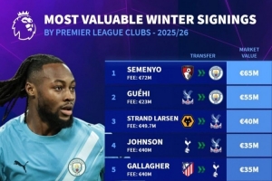 五大联赛冬窗新援德转身价榜:英超塞梅尼奥居首,西甲卢克曼夺魁