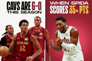 据统计,这是米切尔本赛季至今第6次单场至少砍下35分,在这6场比赛中,骑士队保持全胜。而骑士本赛季的战绩则是12胜6负。